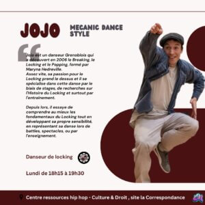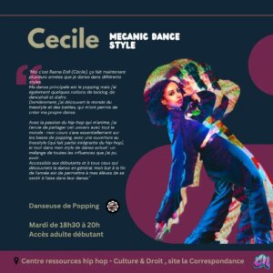 Rejoignez-nous pour libérer votre créativité, renforcer votre confiance et partager la passion de la danse, quelle que soit votre identité ou votre parcours. Le popping englobe plusieurs techniques, telles que le boogaloo, le robot, le tutting, le waving et l’animation, chacune offrant une dimension unique à l’expression corporelle du danseur .