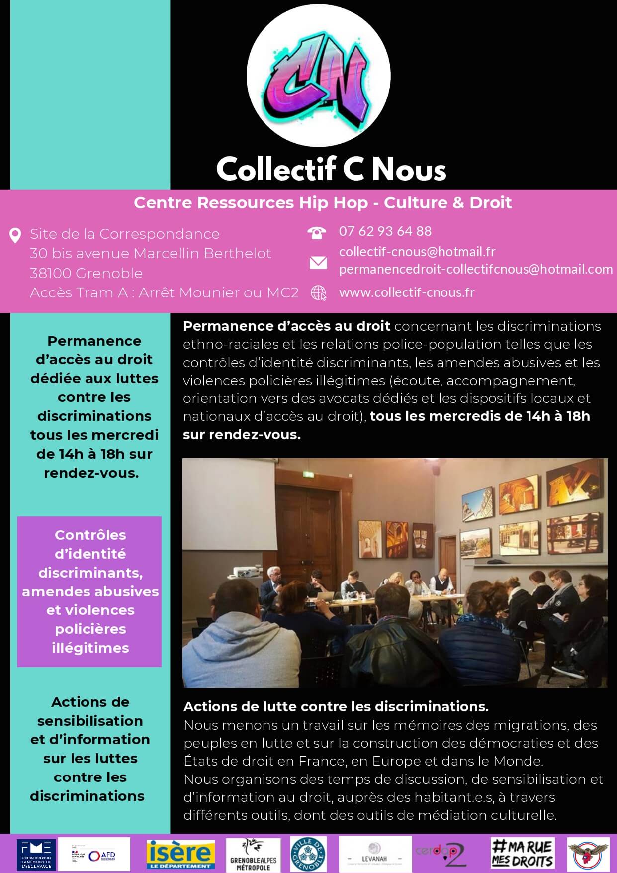 En partenariat avec le défenseur des droits et un réseau d’avocat.es formé.es et sensibilisé.es aux droits de la non-discriminations et avec le soutien de l’ensemble de nos partenaires institutionnels (la Fondation pour la Mémoire de l’esclavage en partenariat avec l’Agence française de Développement, le Département de l’Isère, Grenoble Alpes Métropoles, la ville de Grenoble)